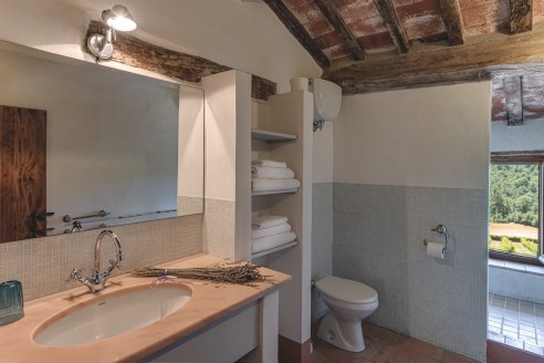 The house is completely private, on a beautiful Italian hill with its own vineyard and olive grove. The entire estate offers spectacular views over a quiet valley with fields and woods. The house has a beautiful garden with an infinity pool which, because of its organic shape, blends beautifully into the lush garden. There is also a large sun terrace with sun loungers and a tennis court. There are several terraces to sit back an relax, including one sheltered under the porch with a large wooden table and wood-fired pizza oven. Everywhere you will experience maximum privacy.